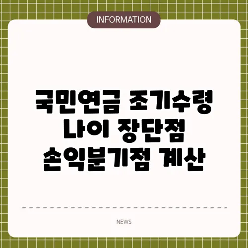 국민연금 조기수령 나이 장단점 손익분기점 계산, 과연 유리할까?